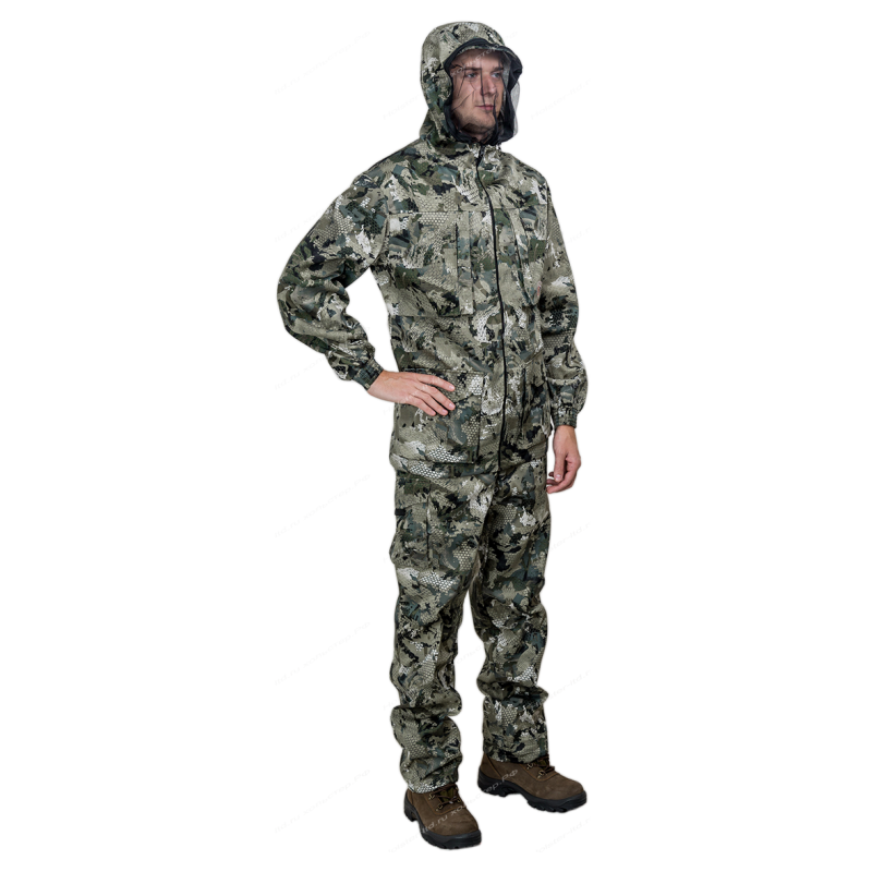 Практичный костюм для леса. Прочность материала и конструкции позволяют использовать костюм в труднопроходимых лесных местах, при этом ничего не торчит, не цепляется и не сваливается. Кроме того, он отличается легким весом, защитой от насекомых, хорошей «дышимостью» и кроем, не стесняющим движений. Охотник дополнительно оценит в костюме бесшумность, растительный «скрадывающий» рисунок и большие карманы под патроны.